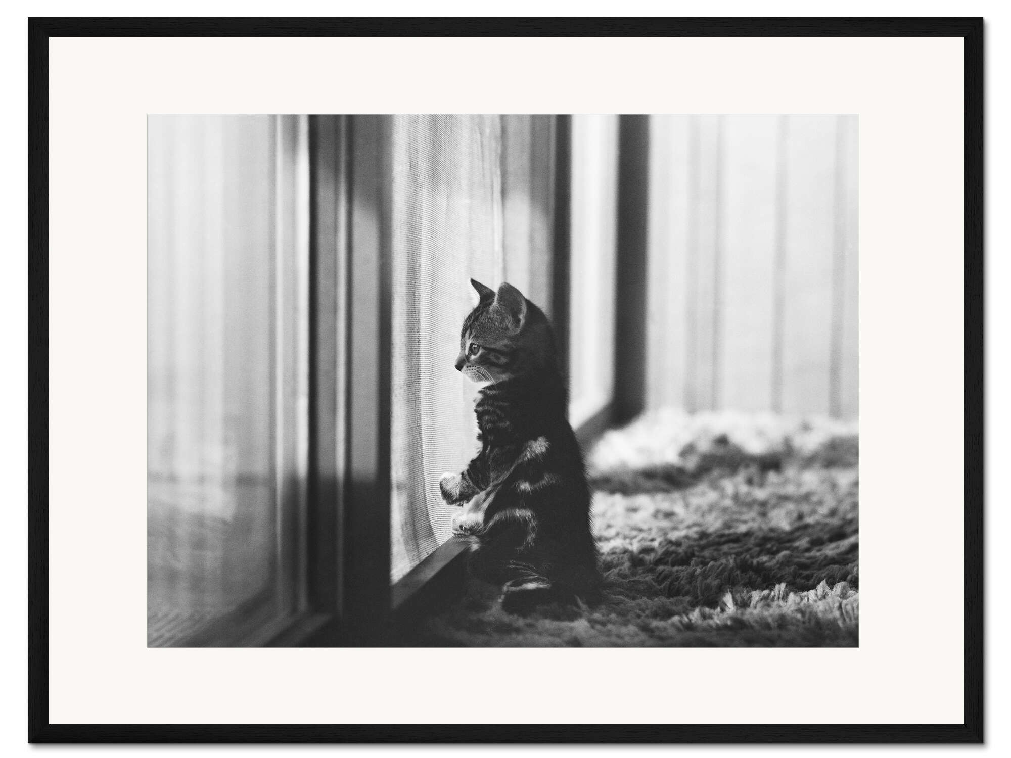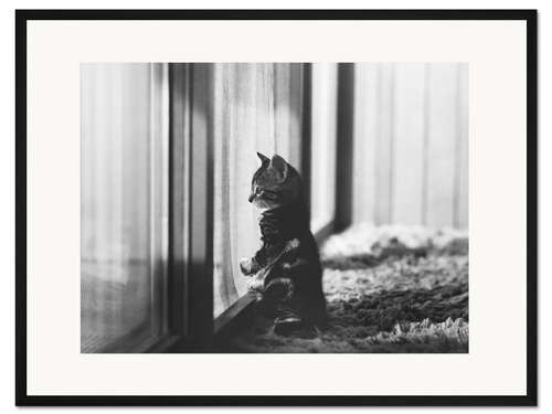 Posterlounge   Wandbilder   Schwarz-Weiß   Joan Baron   Gerahmter Kunstdruck Kätzchen am Fenster