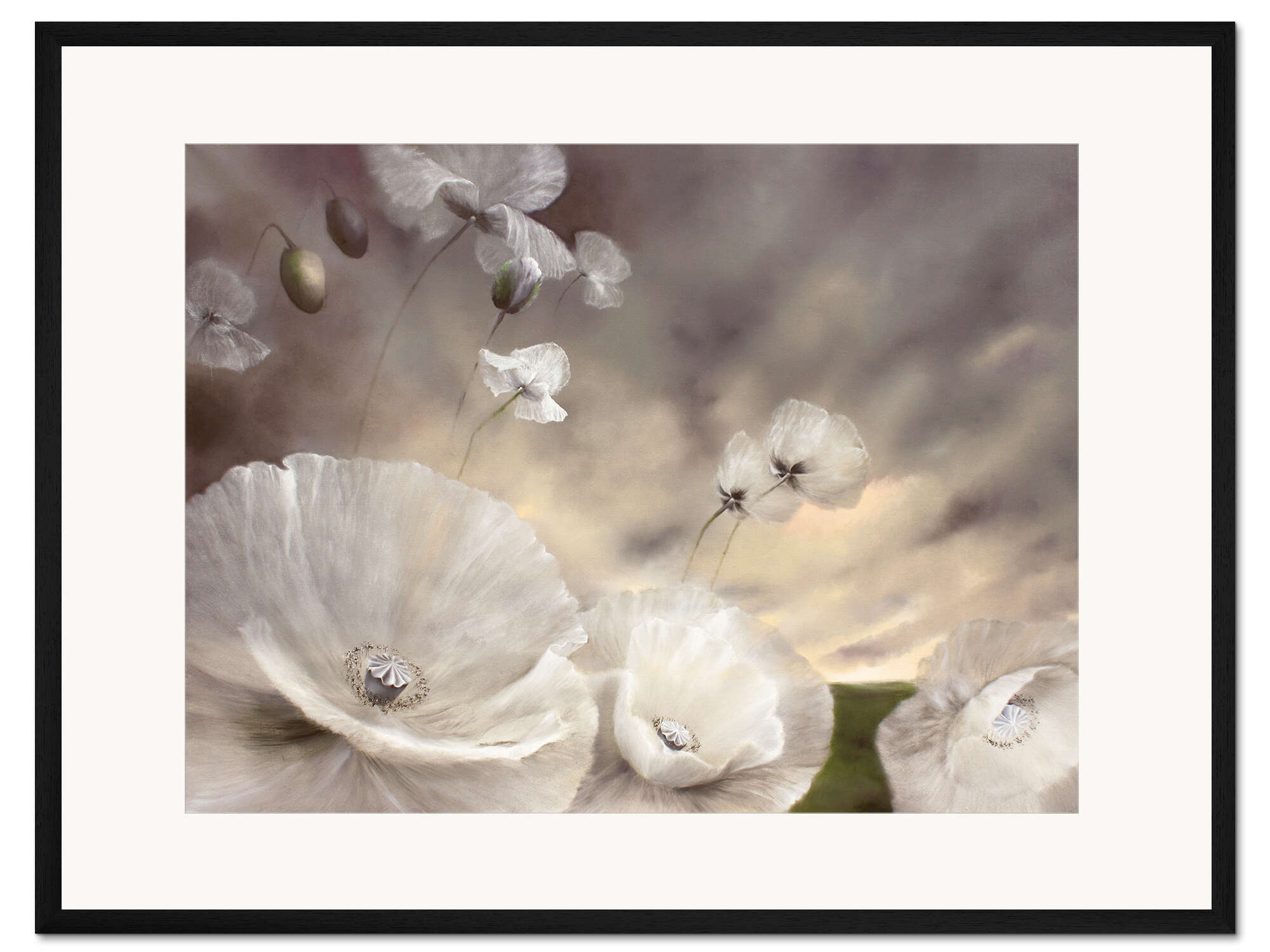 Posterlounge   Wandbilder   Blumen   Mohn   Annette Schmucker   Gerahmter Kunstdruck Flüchtig - weißer Mohn im Sommerwind