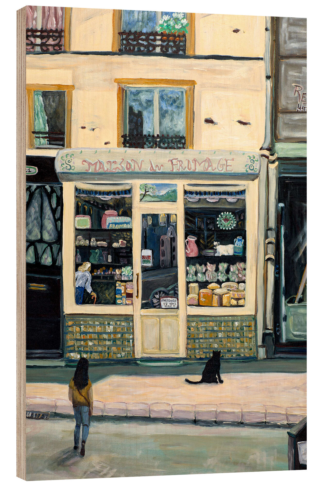 Holzbild Geschäft mit Katze
