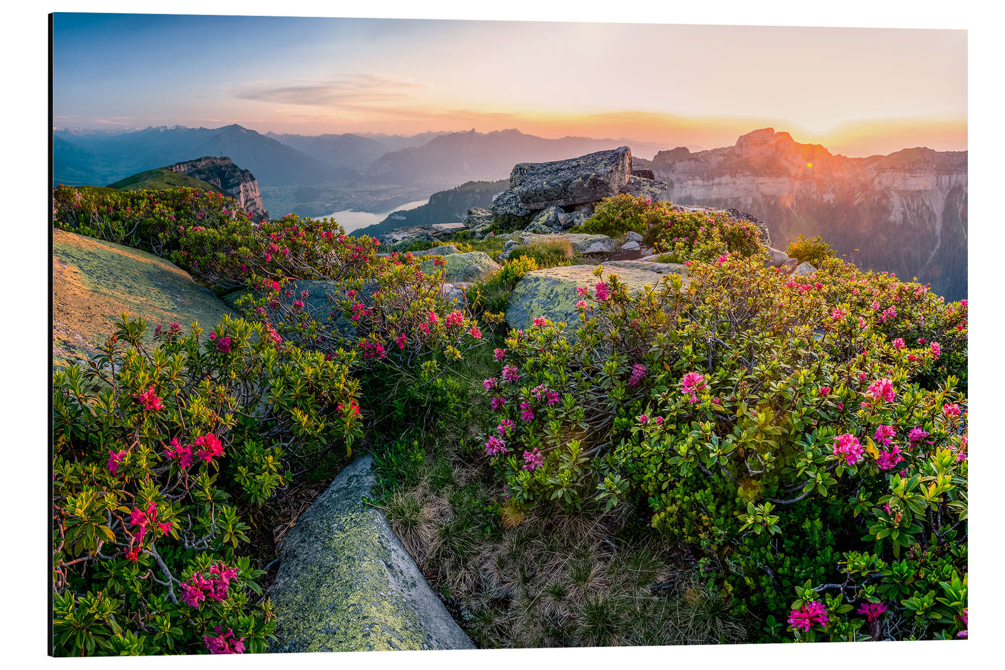 Posterlounge   Wandbilder   Fotografie   Marcel Gross   Magnettafel Alpenrosen bei Sonnenuntergang in den Schweizer Alpen