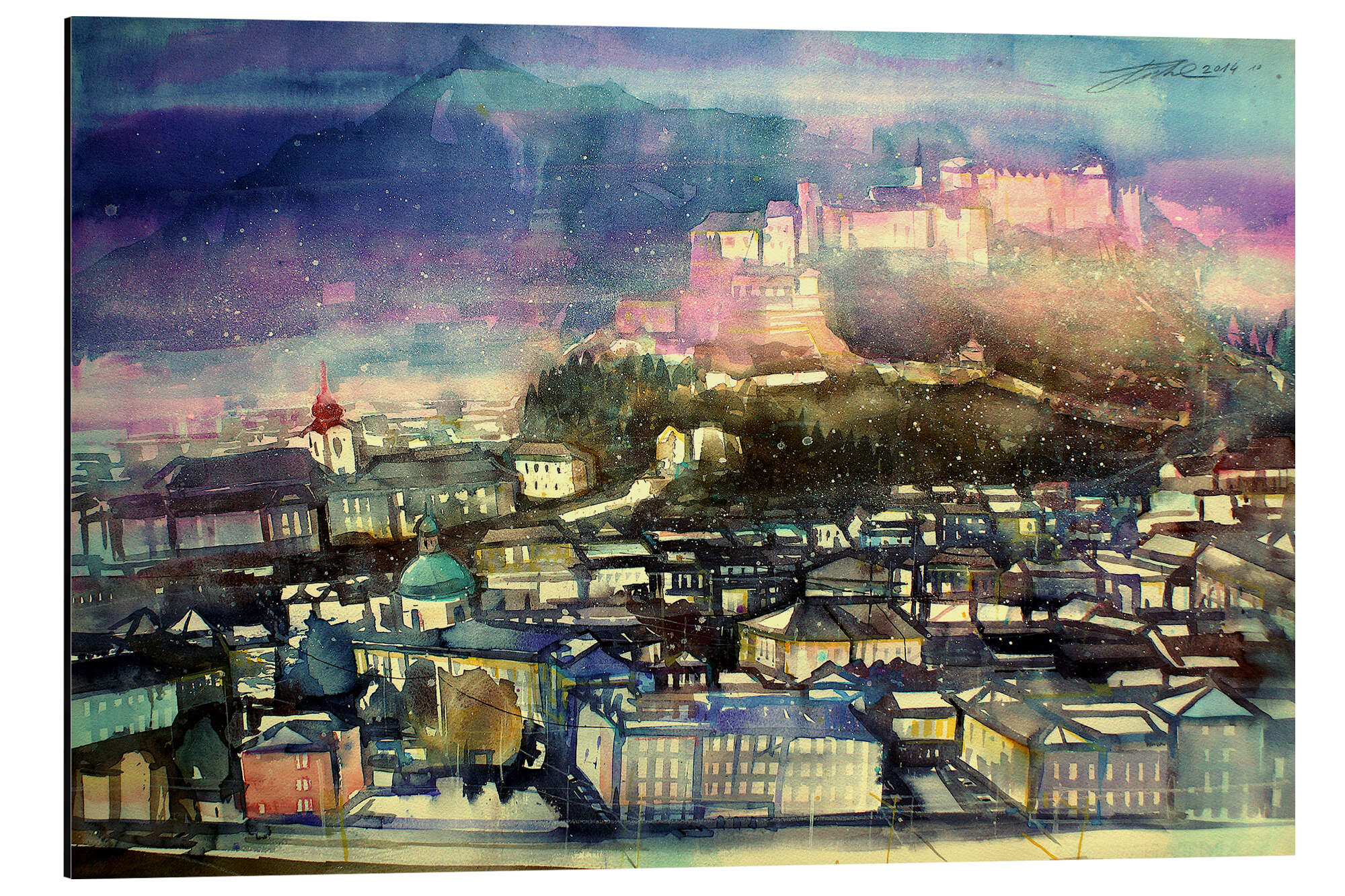 Posterlounge   Wandbilder   Malerei   Aquarell Malerei   Johann Pickl   Magnettafel Salzburg, Blick zur Festung