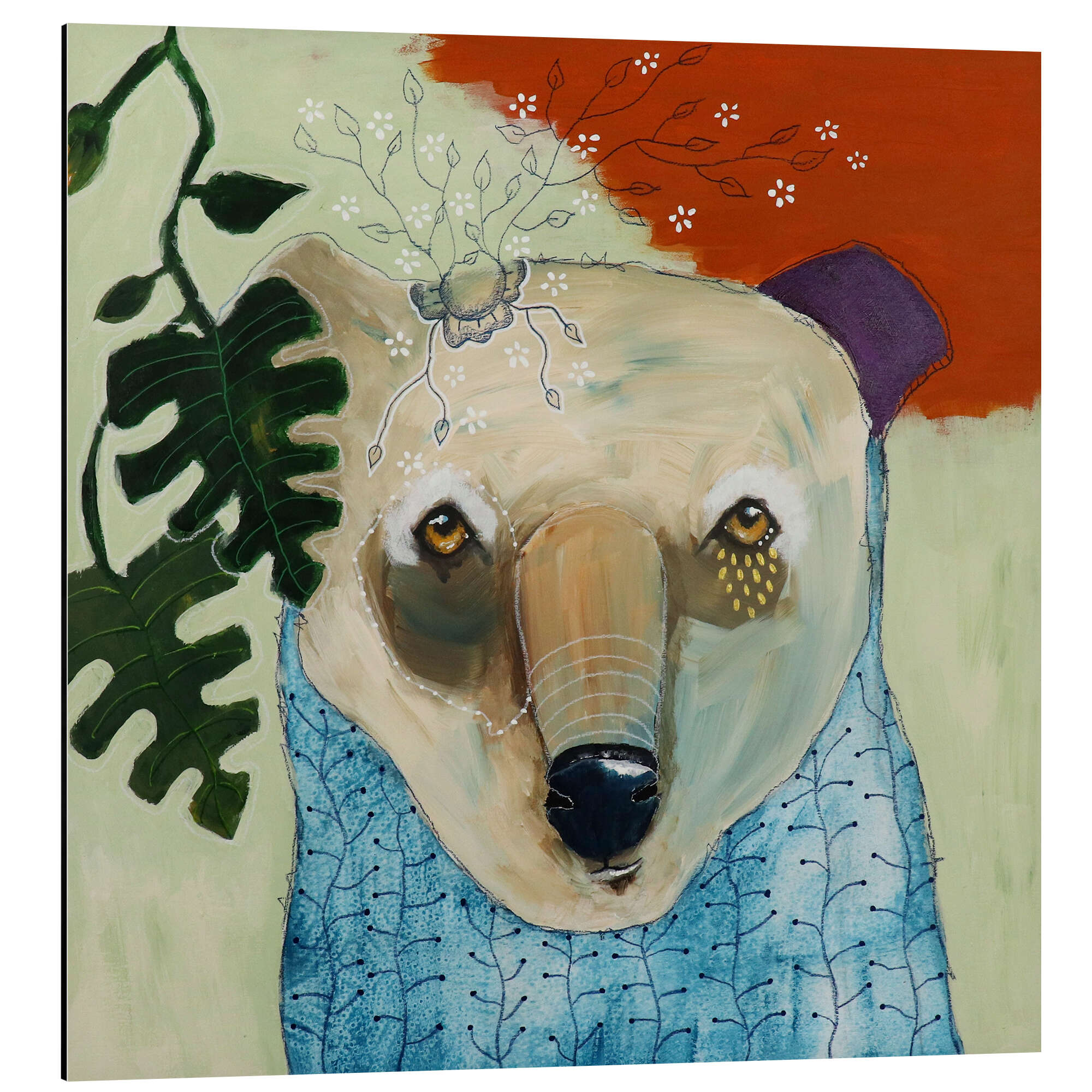 Posterlounge   Wandbilder   Tiere   Wildtiere   Bären   Micki Wilde   Magnettafel Bär mit Blättern