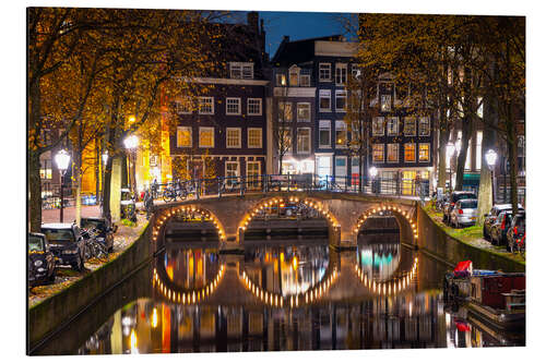 Posterlounge   Wandbilder   Fotografie   George Pachantouris   Magnettafel Beleuchtete Brücke nachts in Amsterdam, Niederlande