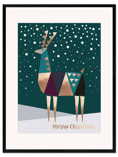 Gerahmter Kunstdruck Rentier Weihnachten