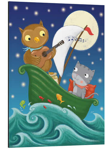 Magnettafel Süße Bootsfahrt von Eule und Katze