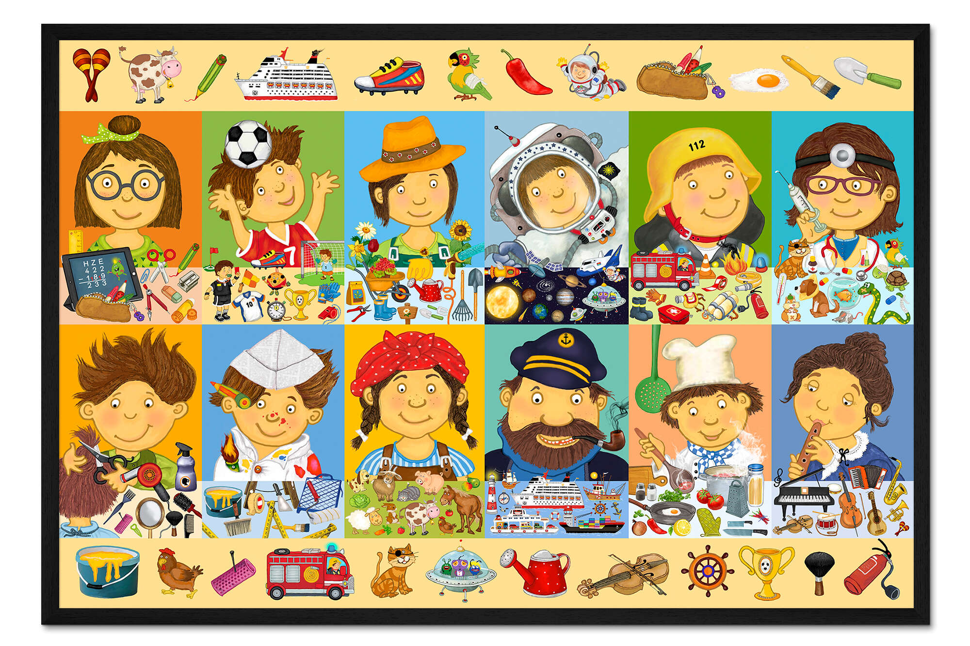 Posterlounge   Wandbilder   Illustration   Marion Krätschmer   Gerahmter Kunstdruck Wimmelbild Beruferaten