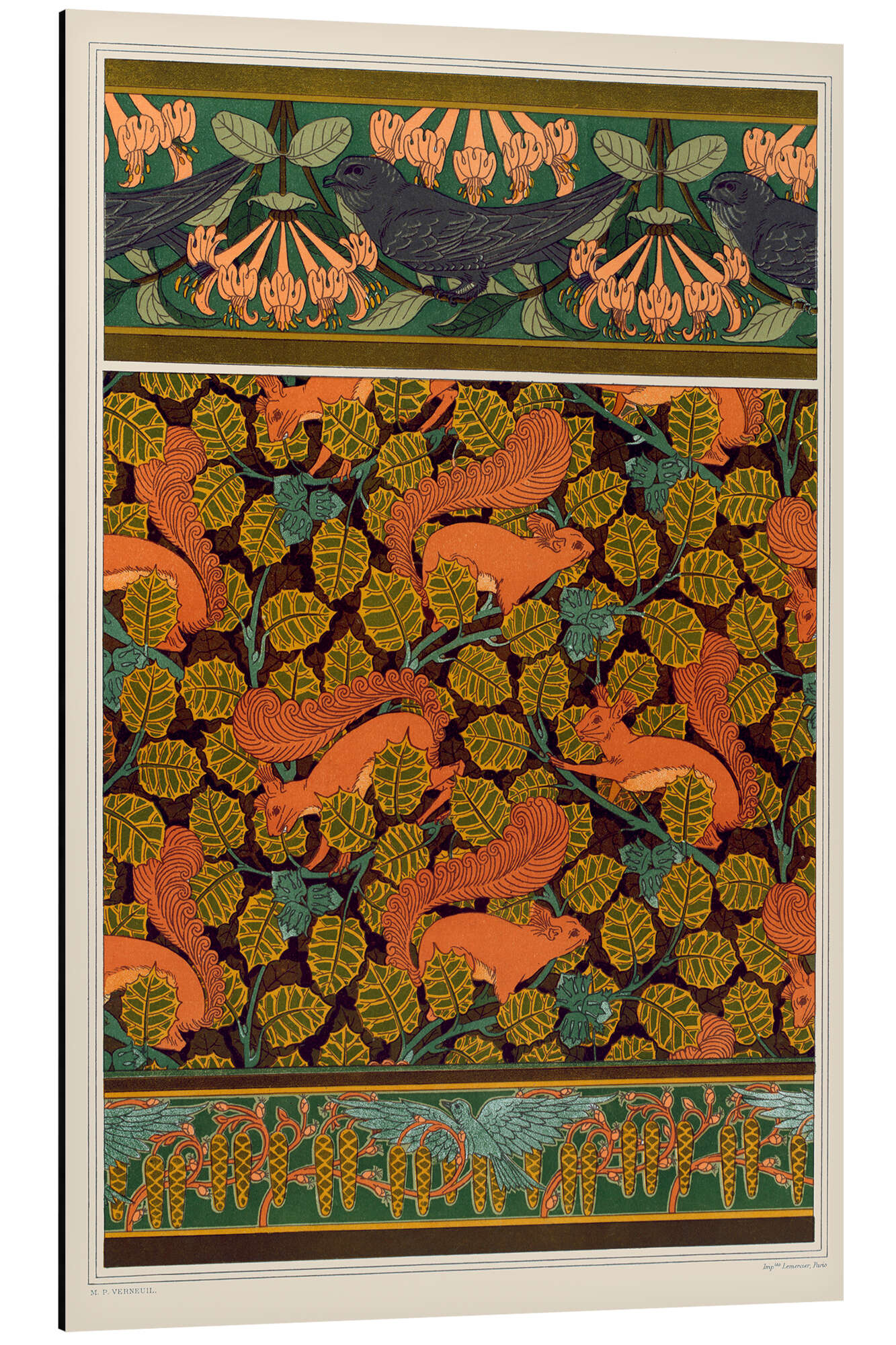 Posterlounge   Wandbilder   Malerei   Jugendstil   Maurice Pillard Verneuil   Magnettafel Tapetendesigns und Bordüren: Mauersegler, Eichhörnchen, Vögel