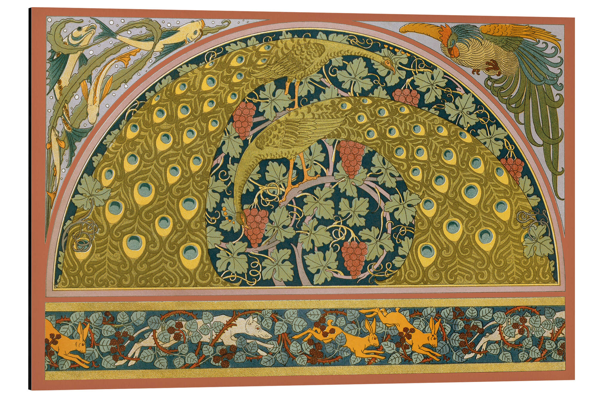 "Hasen u. Hunde in Brombeersträuchern“, "Pfauen mit Fisch und Seetang" von Maurice Pillard Verneuil Master Collection