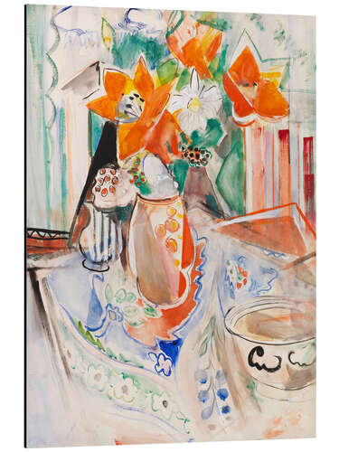 Posterlounge   Wandbilder   Malerei   Expressionismus   Oskar Moll   Magnettafel Blumenstillleben mit Schüssel und gestreiftem Krug