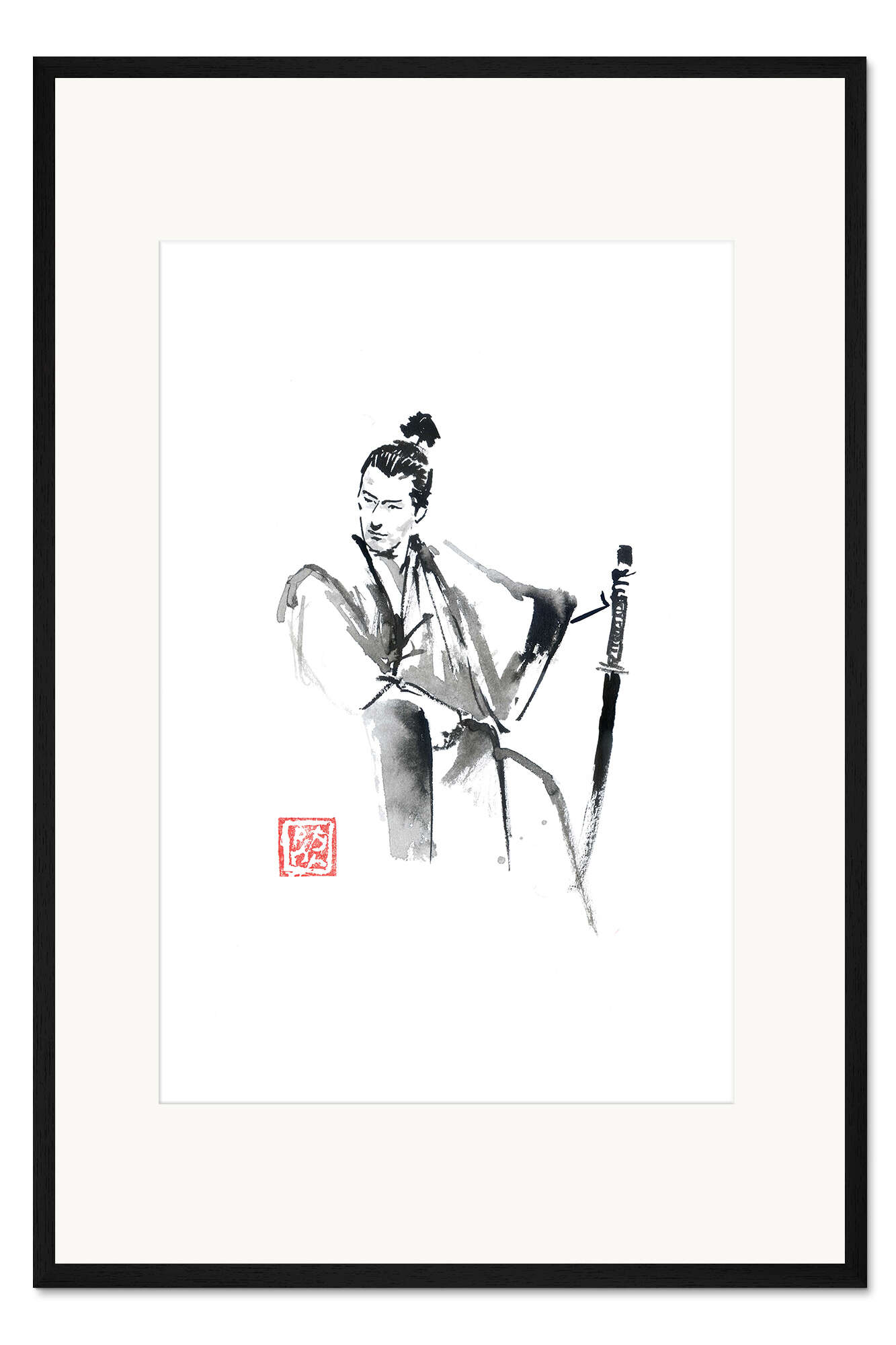 Posterlounge   Wandbilder   Illustration   Zeichnung & Skizze   Péchane   Gerahmter Kunstdruck Sitzender Samurai
