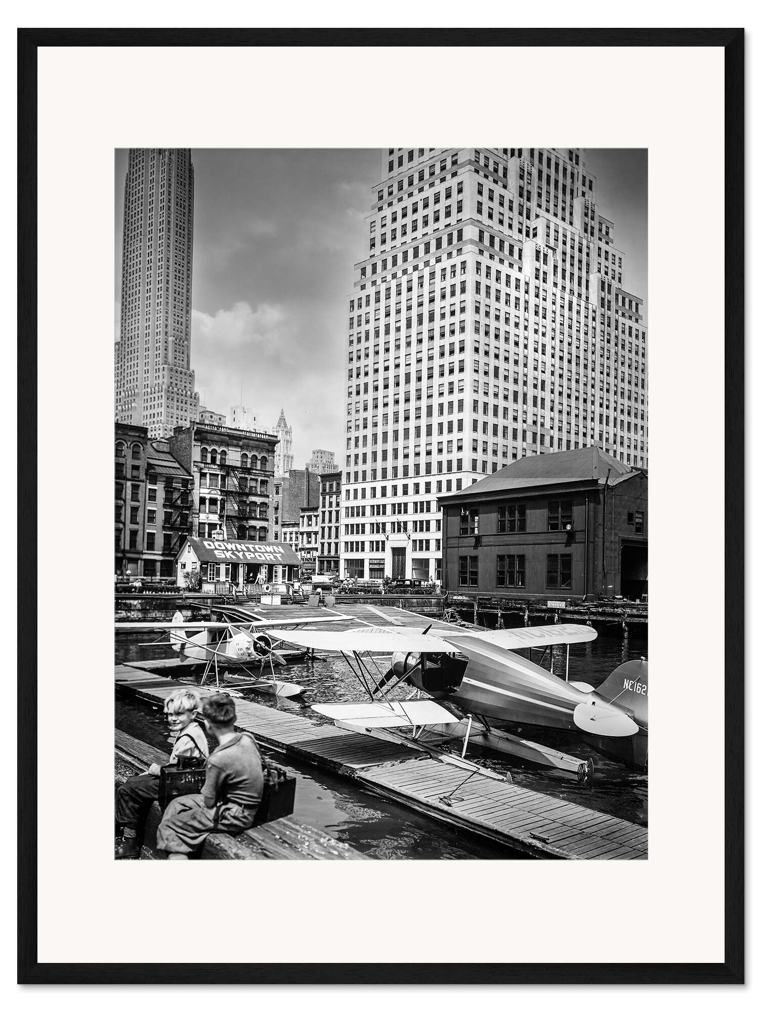 Posterlounge   Wandbilder   Schwarz-Weiß   Christian Müringer   Gerahmter Kunstdruck Historisches New York: Downtown Skyport, Manhattan, 1936