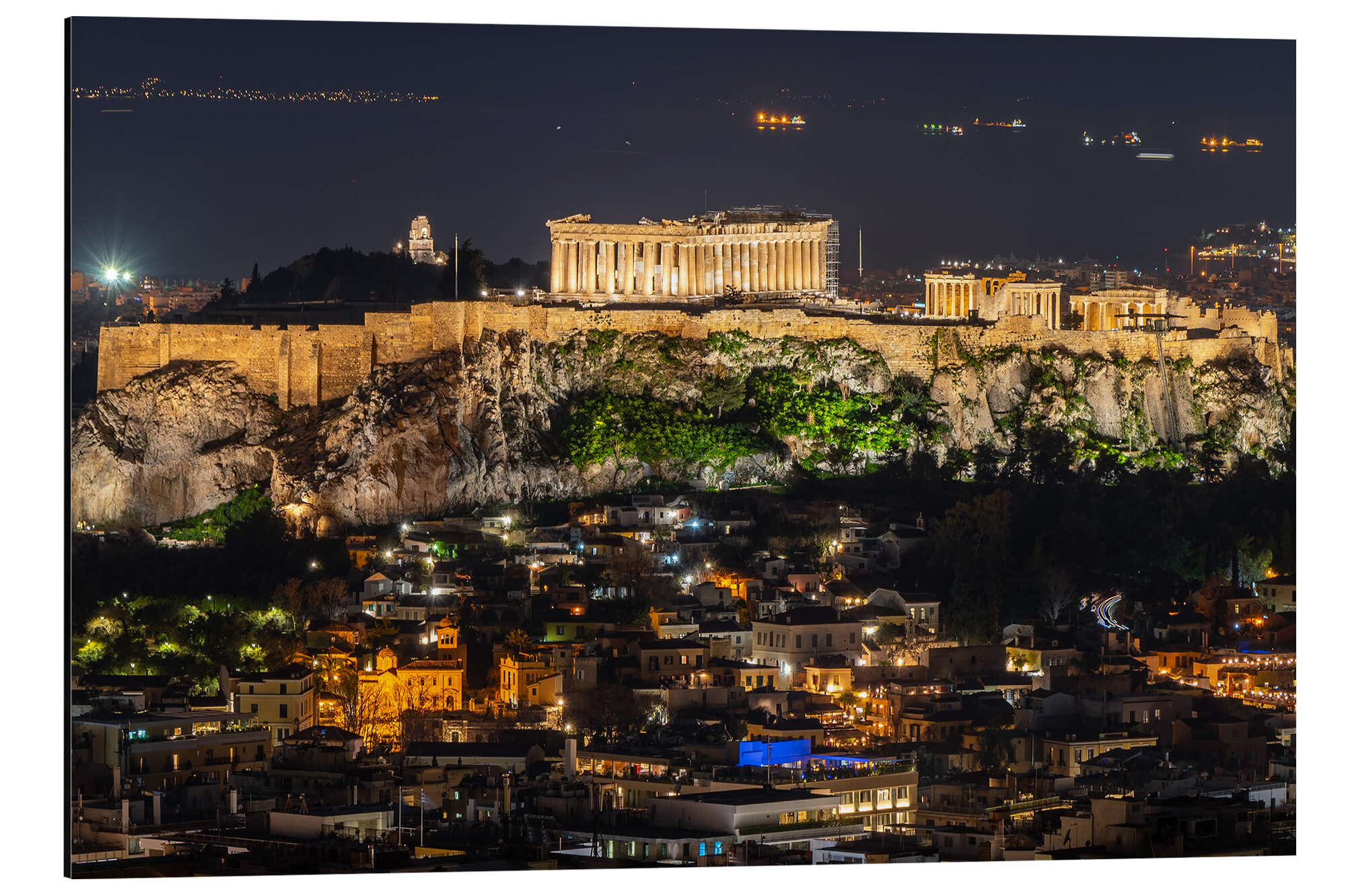 Magnettafel Akropolis und die Altstadt von Athen, Griechenland bei Nacht