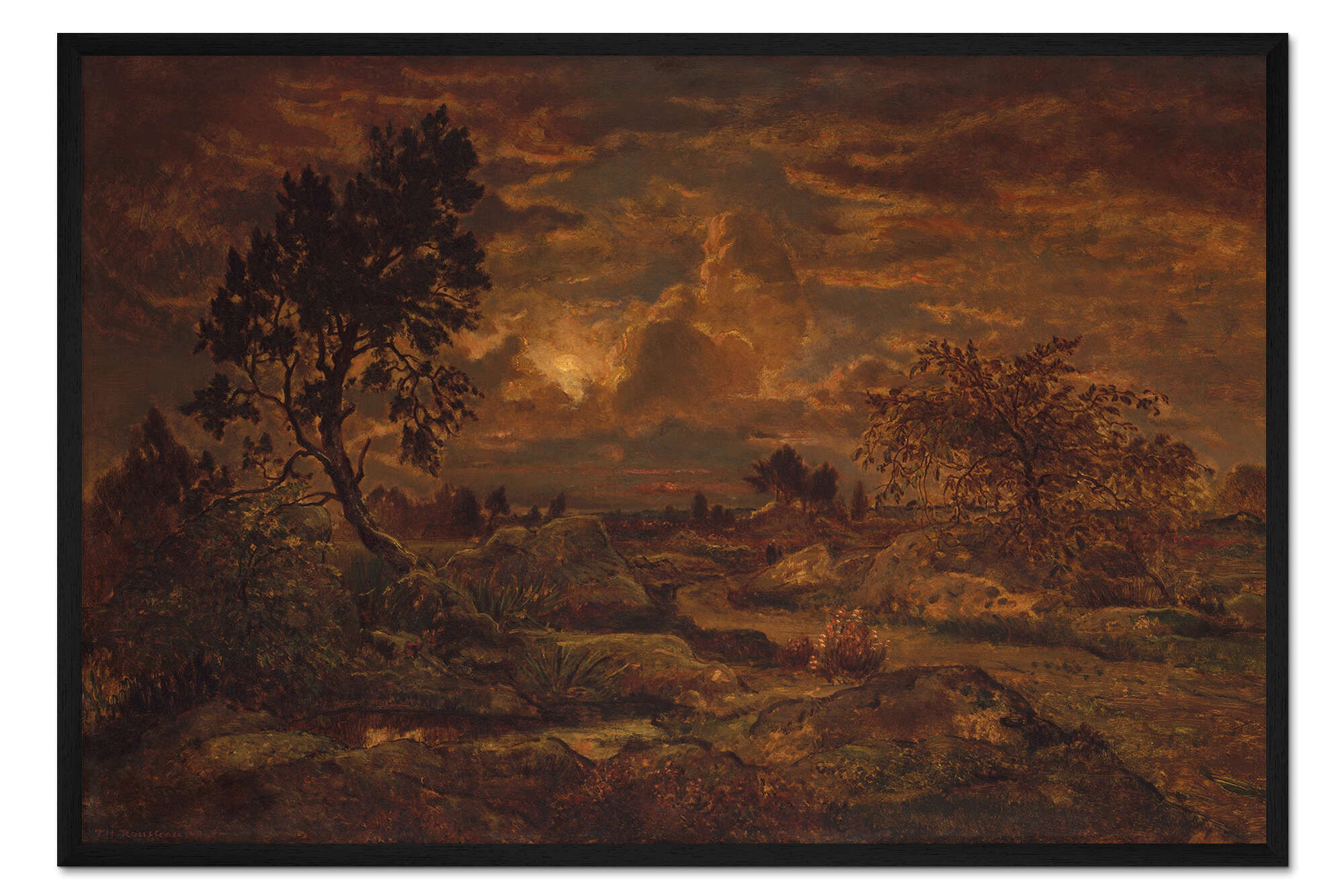 Posterlounge   Wandbilder   Malerei   Theodore Rousseau   Gerahmter Kunstdruck Sonnenuntergang bei Arbonne, ca. 1860