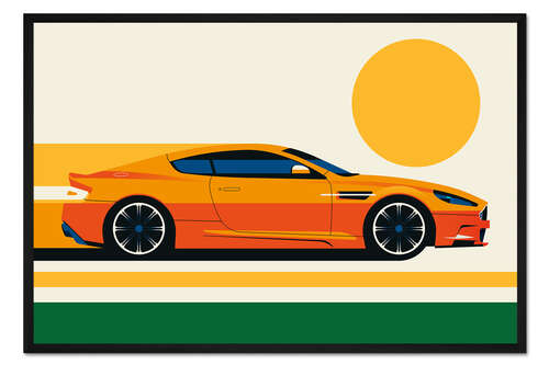 Posterlounge   Wandbilder   Illustration   Bo Lundberg   Gerahmter Kunstdruck Modern British orange car with sun