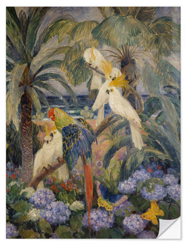 Wandsticker Tropische Landschaft mit Papageien