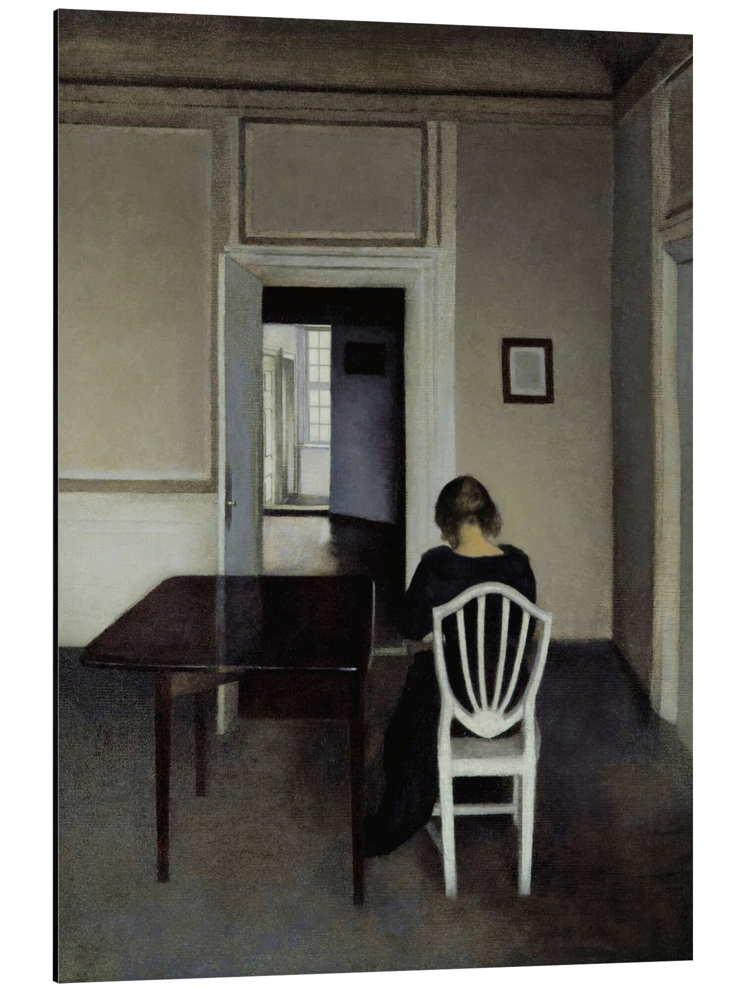 Posterlounge   Wandbilder   Menschen   Frauen   Vilhelm Hammershøi   Magnettafel Interieur mit Ida auf weißem Stuhl