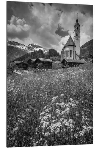 Posterlounge   Wandbilder   Schwarz-Weiß   Christian Müringer   Magnettafel Kirche und Bauernhäuser in Obermauern im Virgental, Osttirol