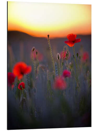 Posterlounge   Wandbilder   Fotografie   Peter Wey   Magnettafel Verträumtes Bokeh von roten Mohnblumen bei untergehender Sonne