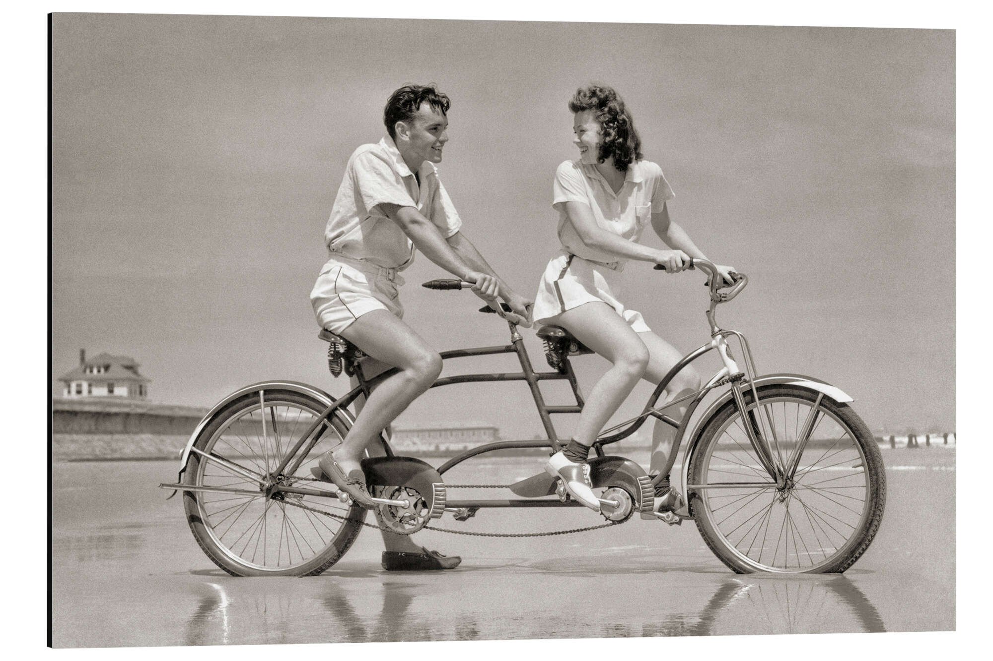 Posterlounge   Wandbilder   Schwarz-Weiß   Magnettafel Pärchen fährt Tandem am Strand, 1940er