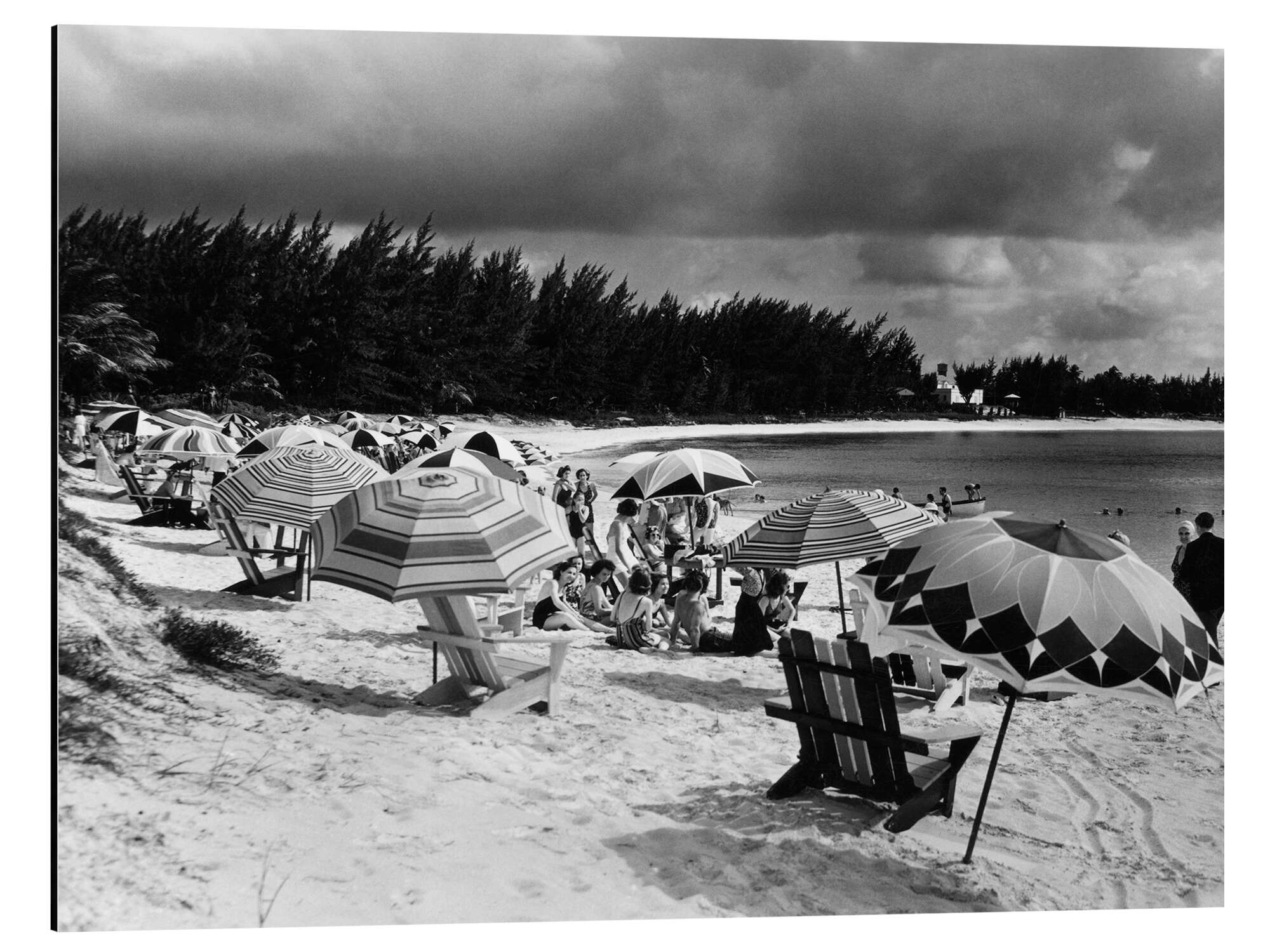 Posterlounge   Wandbilder   Schwarz-Weiß   Magnettafel Strand mit Sonnenschirmen, 1940er Jahre, Bahamas