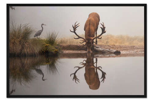 Posterlounge   Wandbilder   Tiere   Wildtiere   Hirsche   Max Ellis   Gerahmter Kunstdruck Hirsch und Reiher im Nebel