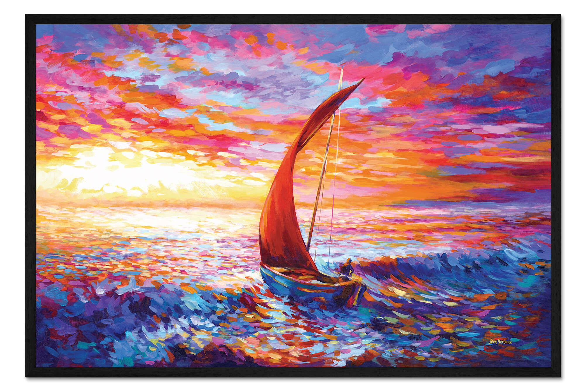 Posterlounge   Wandbilder   Bunt   Leon Devenice   Gerahmter Kunstdruck Segelboot im Sonnenuntergang
