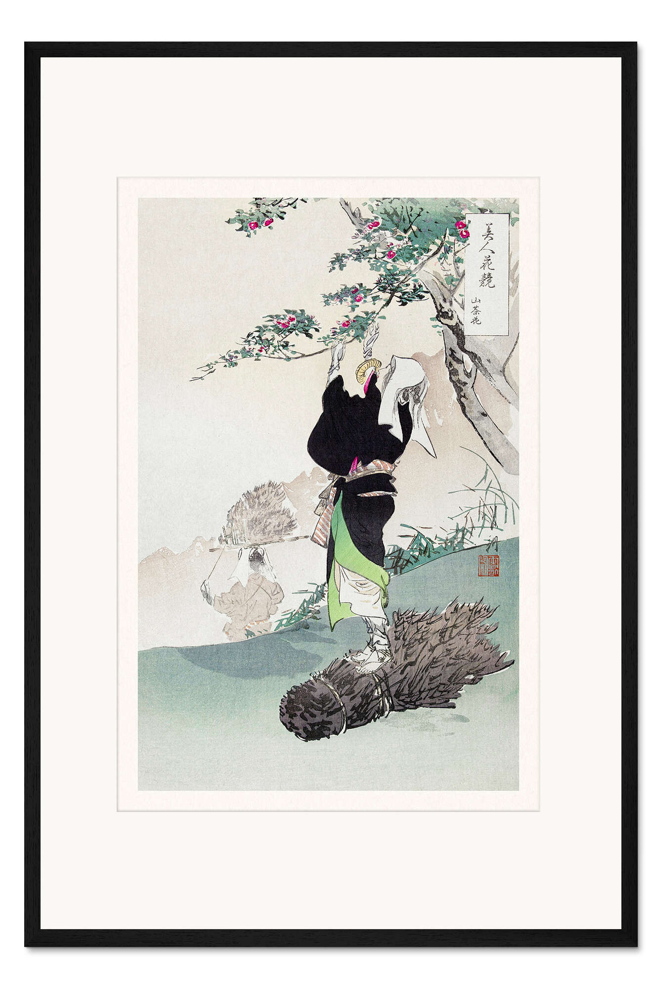 Posterlounge   Wandbilder   Malerei   Asiatische Kunst   Ogata Gekkō   Gerahmter Kunstdruck Eine Dame pflückt Bergkirschen