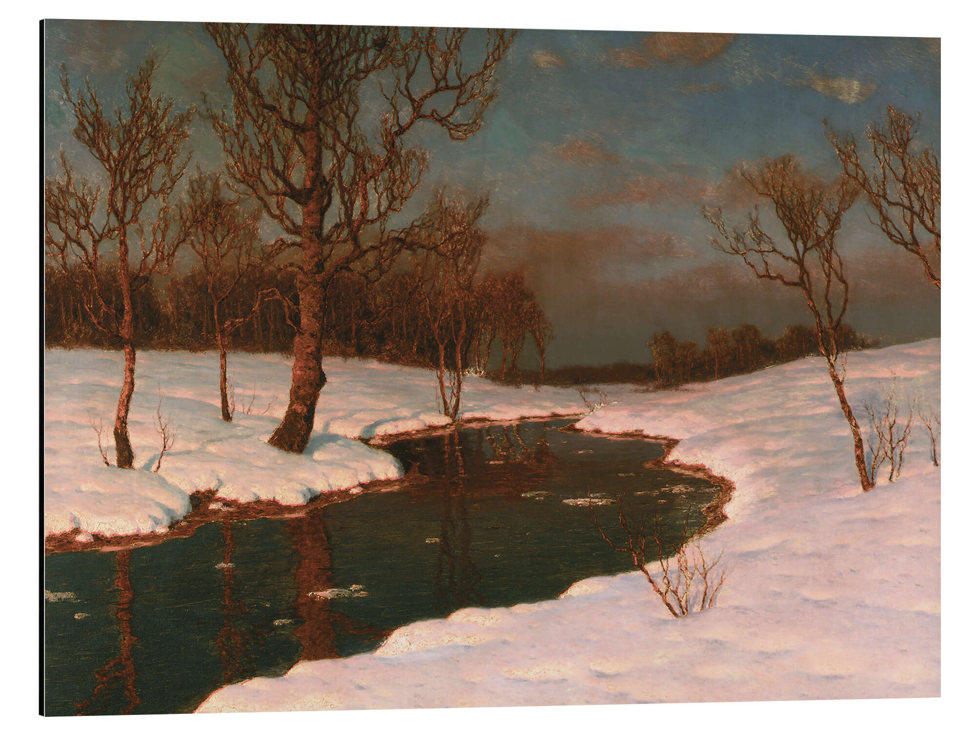 Posterlounge   Wandbilder   Landschaften   Ivan Fedorovich Choultsé   Magnettafel Sonnenuntergang in einer verschneiten Flusslandschaft