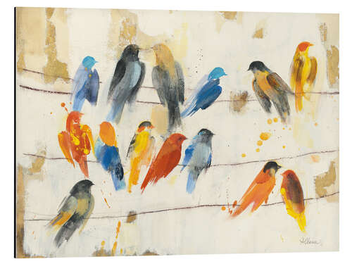 Posterlounge   Wandbilder   Tiere   Vögel   Albena Hristova   Magnettafel Hübsche bunte Vögel auf einer Leine