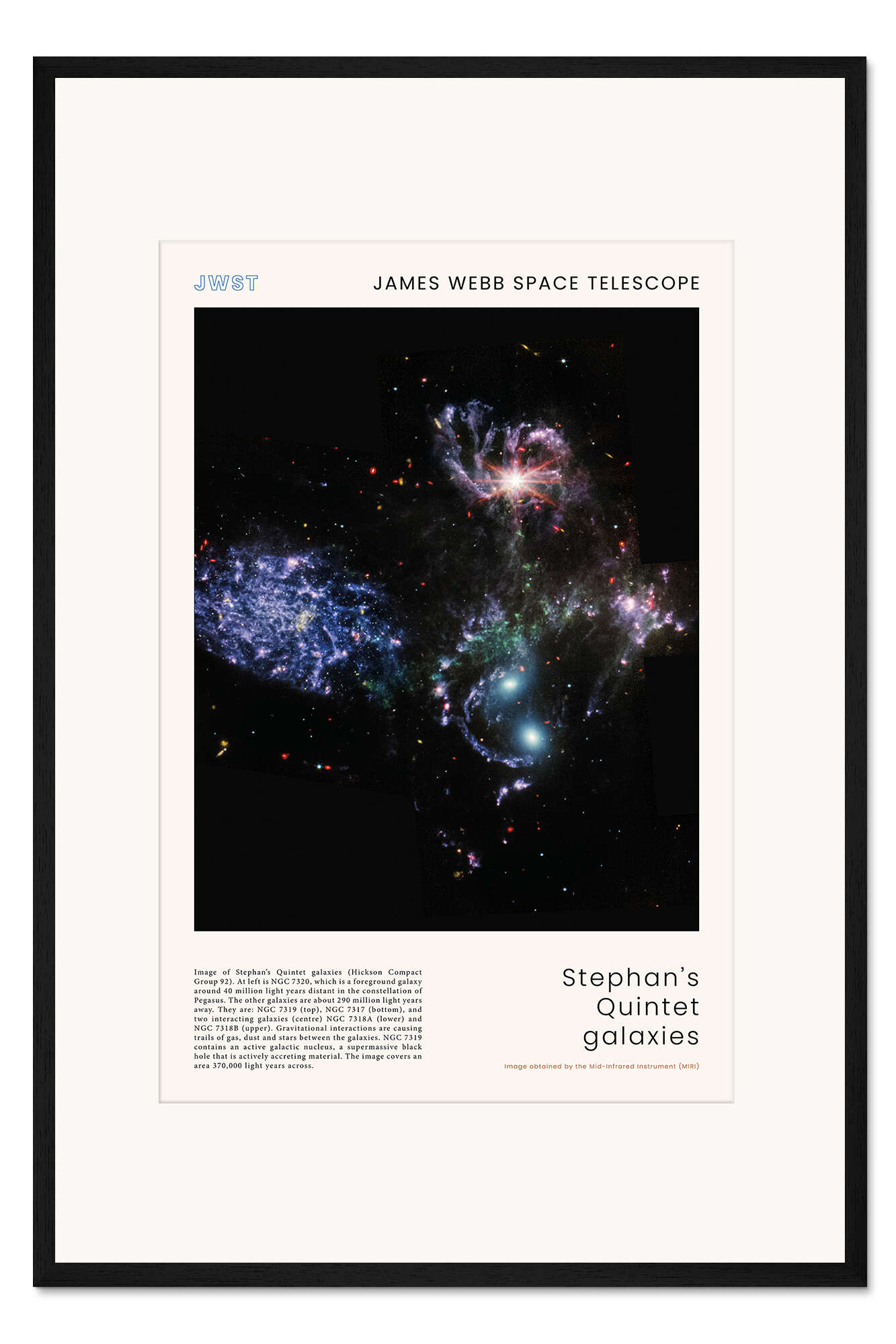 Posterlounge   Wandbilder   Weltraum   Sterne   NASA   Gerahmter Kunstdruck JWST - Stephan's Quintet galaxies (MIRI)