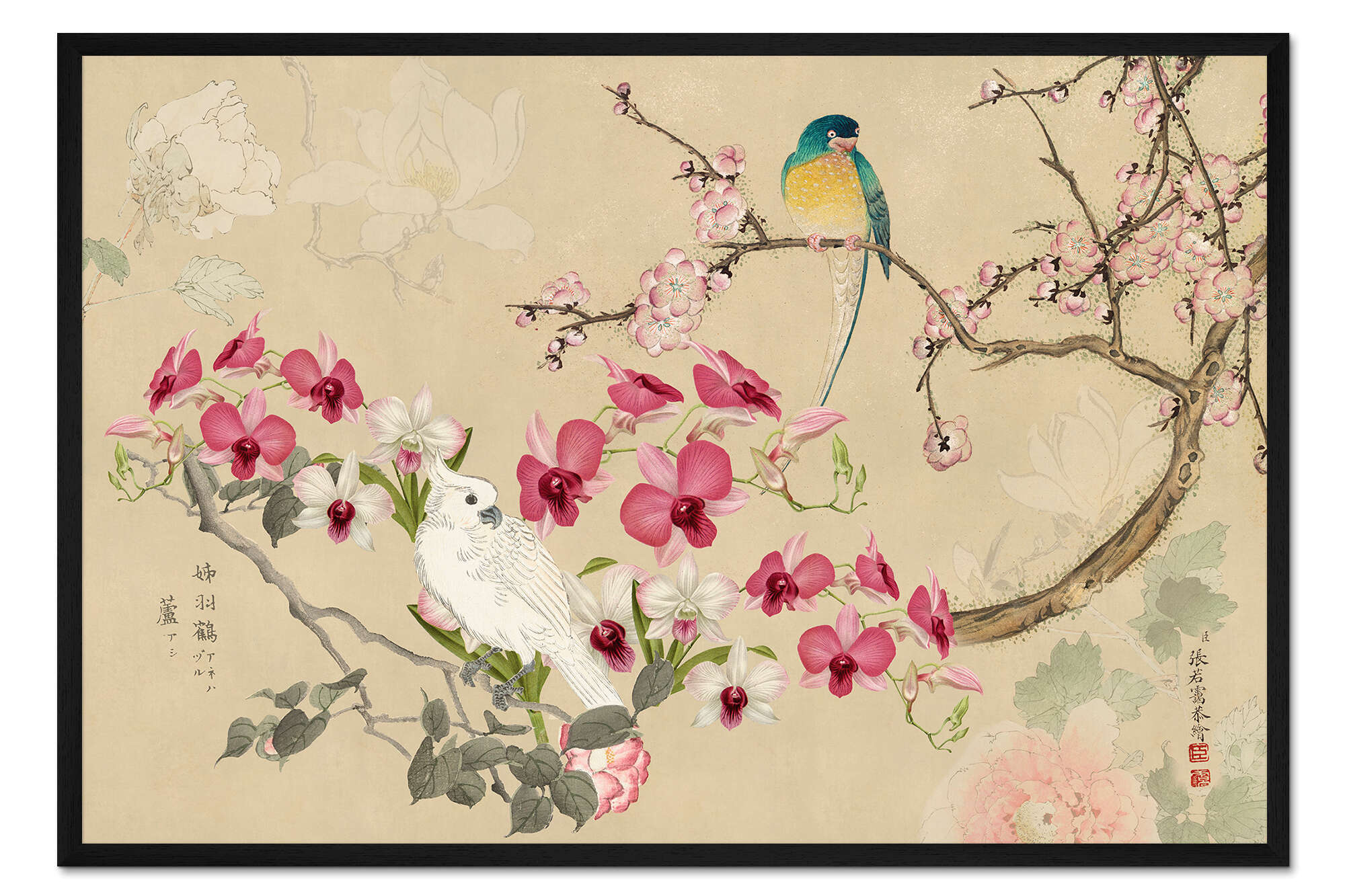 Posterlounge   Wandbilder   Blumen   Kirschblüten   Andrea Haase   Gerahmter Kunstdruck Chinoiserie mit Vögeln II