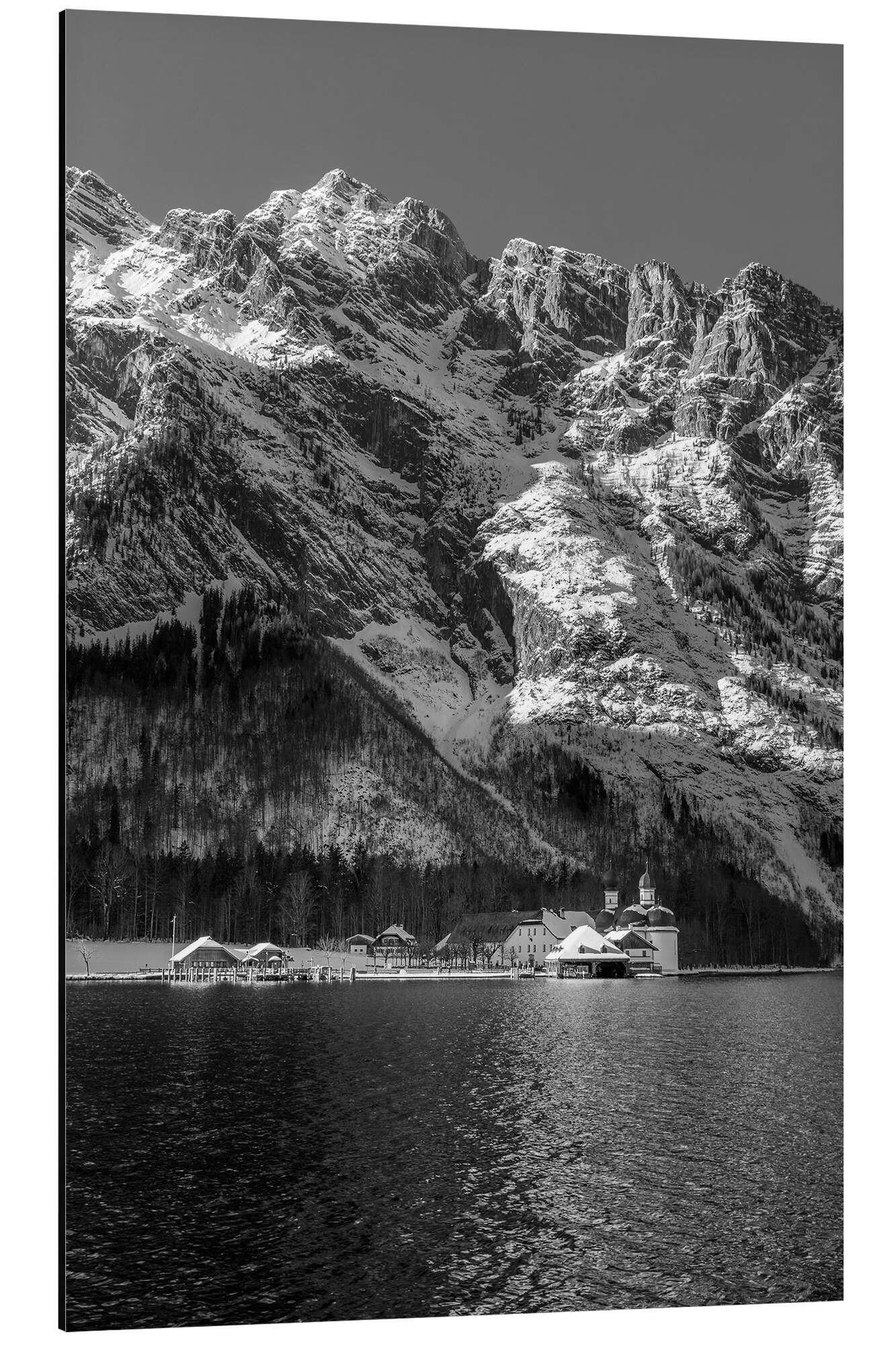 Posterlounge   Wandbilder   Landschaften   Berge & Gebirge   Christian Müringer   Magnettafel Königssee mit St. Batholomä, s/w