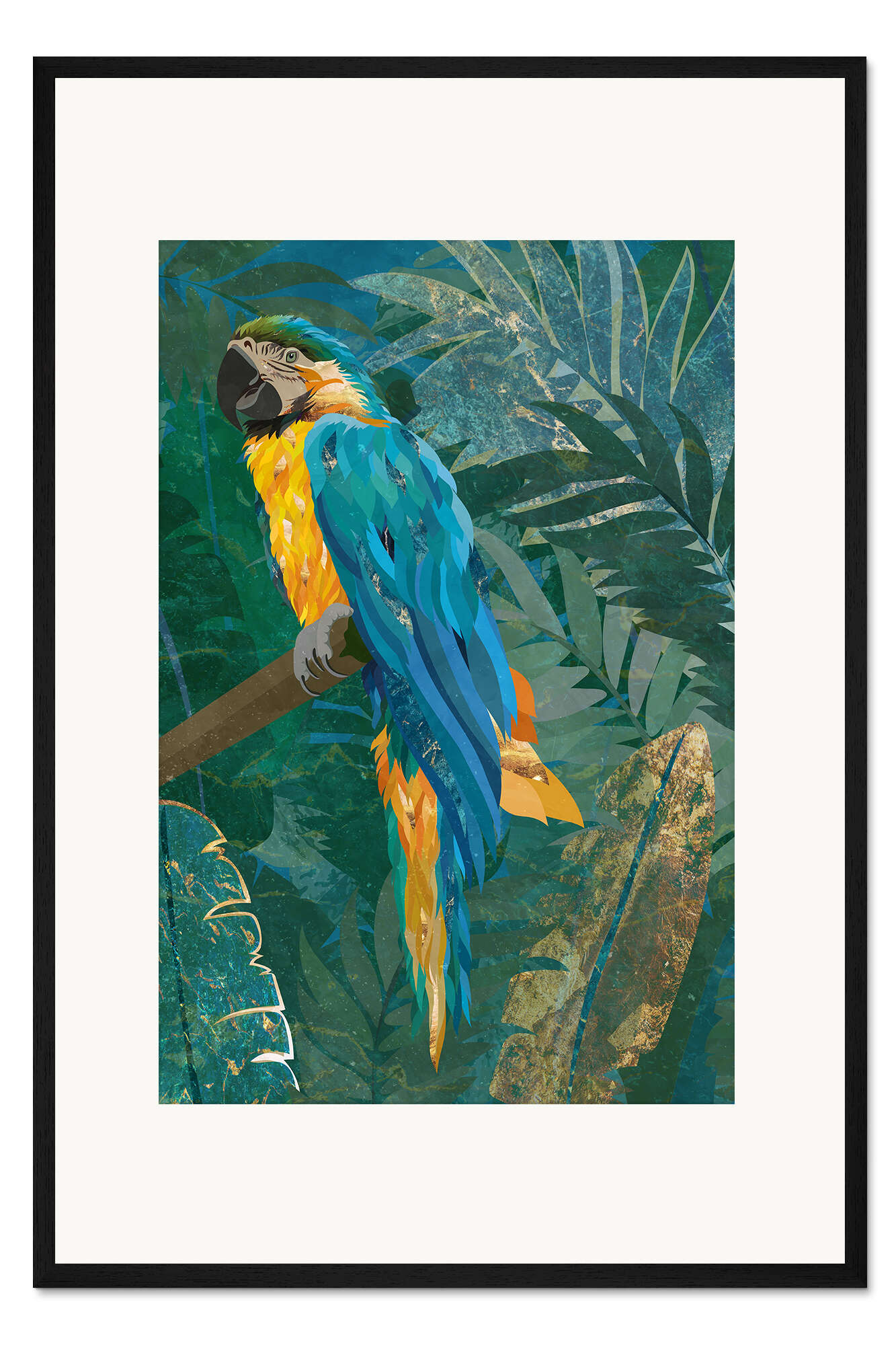 Posterlounge   Wandbilder   Illustration   Sarah Manovski   Gerahmter Kunstdruck Ara im goldenen Dschungel
