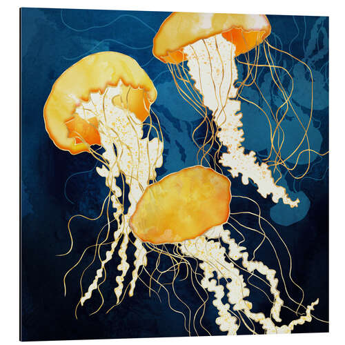 Posterlounge   Wandbilder   Illustration   SpaceFrog Designs   Magnettafel Drei Quallen in gelb-metallic