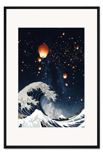 Posterlounge   Wandbilder   Fantasy   Gen Z   Gerahmter Kunstdruck Die große Welle unter dem Laternenhimmel