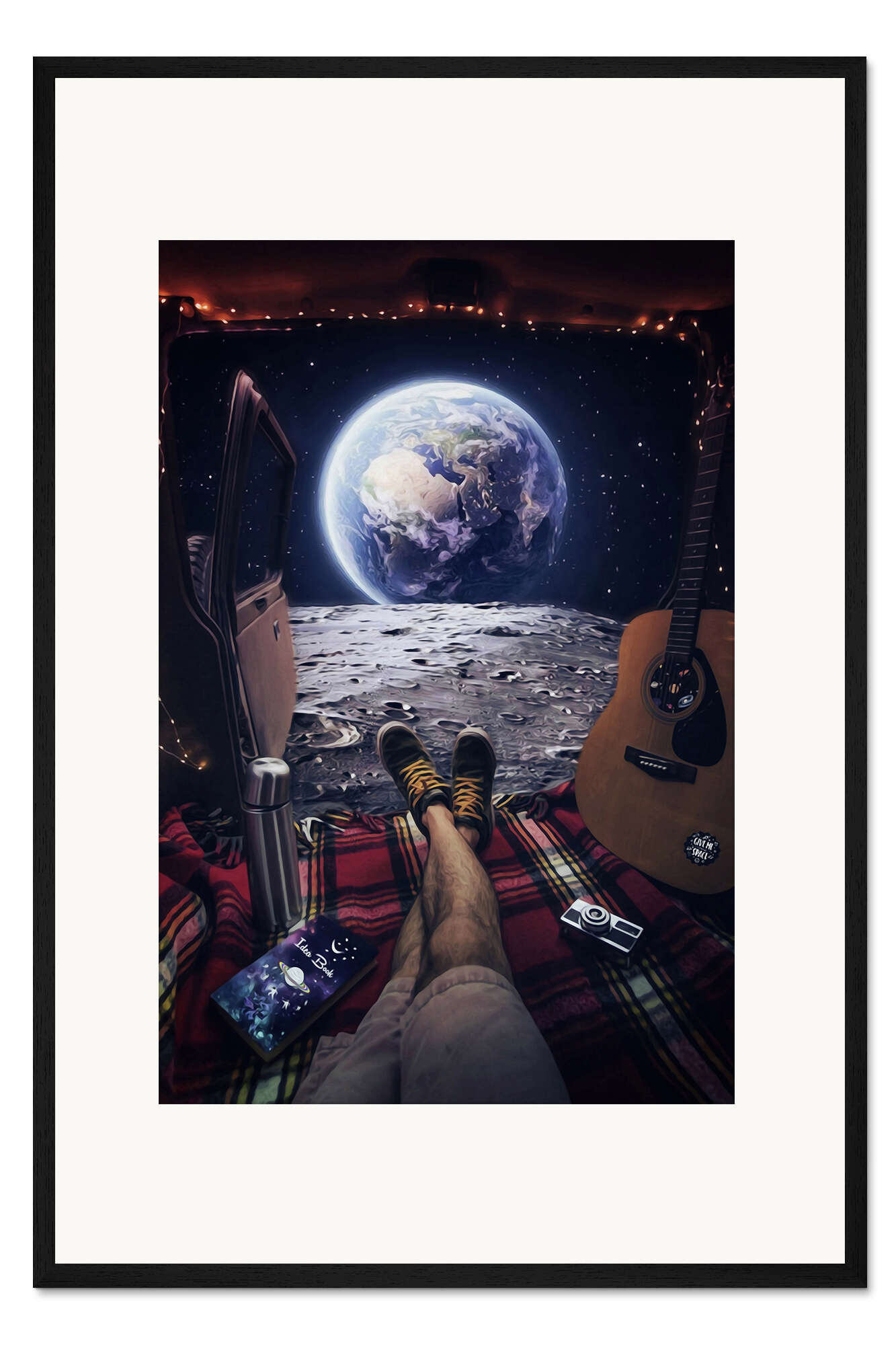 Posterlounge   Wandbilder   Fotografie   Fotocollage   Gen Z   Gerahmter Kunstdruck Im Van auf dem Mond die Erde bewundern