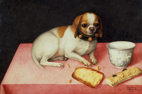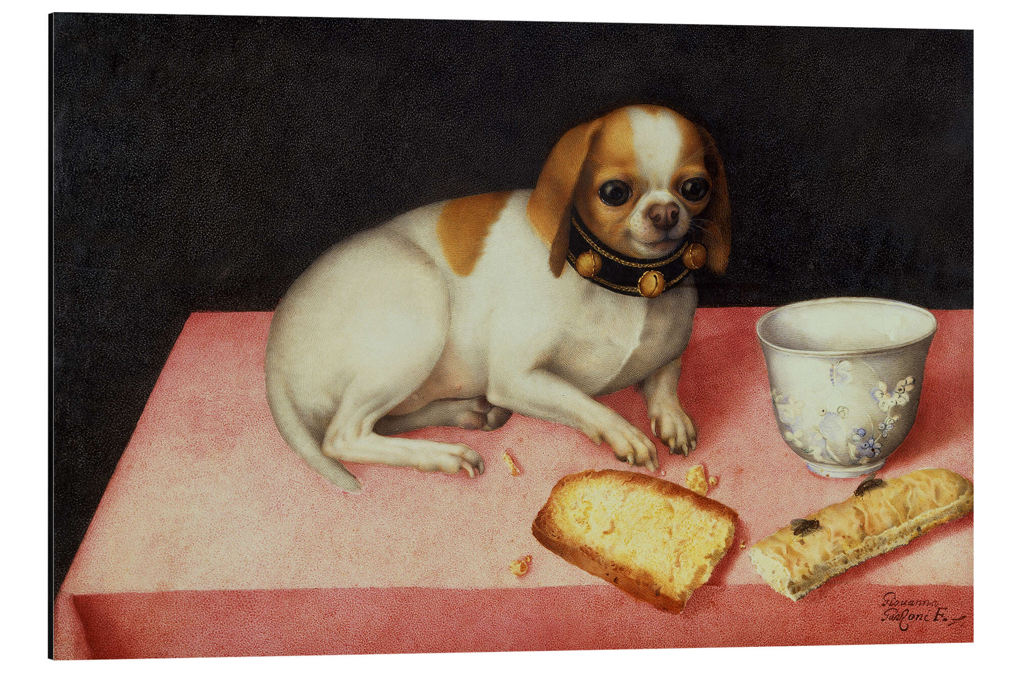 Posterlounge   Wandbilder   Stillleben   Giovanna Garzoni   Magnettafel Hündchen mit Brotschnitte