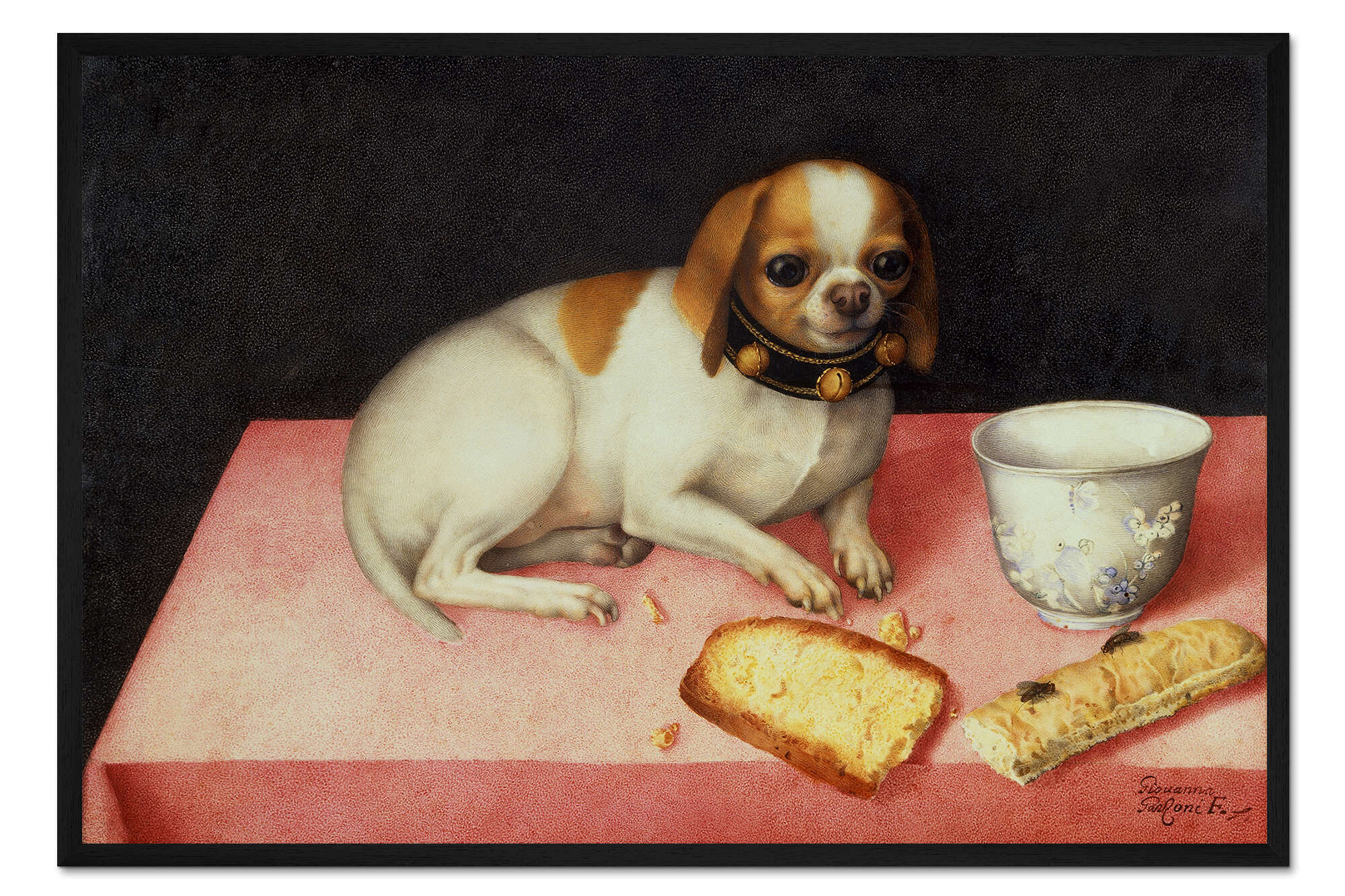Posterlounge   Wandbilder   Stillleben   Giovanna Garzoni   Gerahmter Kunstdruck Hündchen mit Brotschnitte