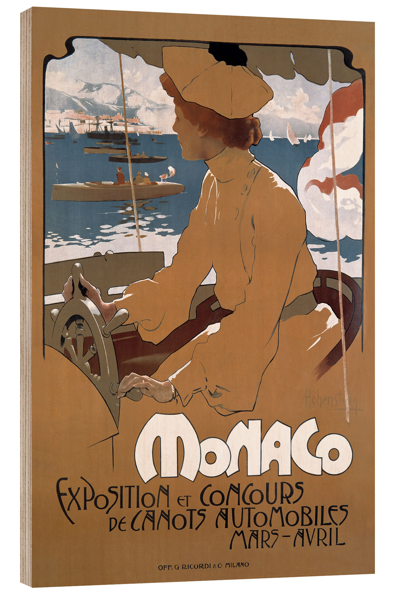 Posterlounge   Wandbilder   Fahrzeuge   Schiffe   Adolfo Hohenstein   Holzbild Monaco, Canots Automobil-Ausstellung, 1900