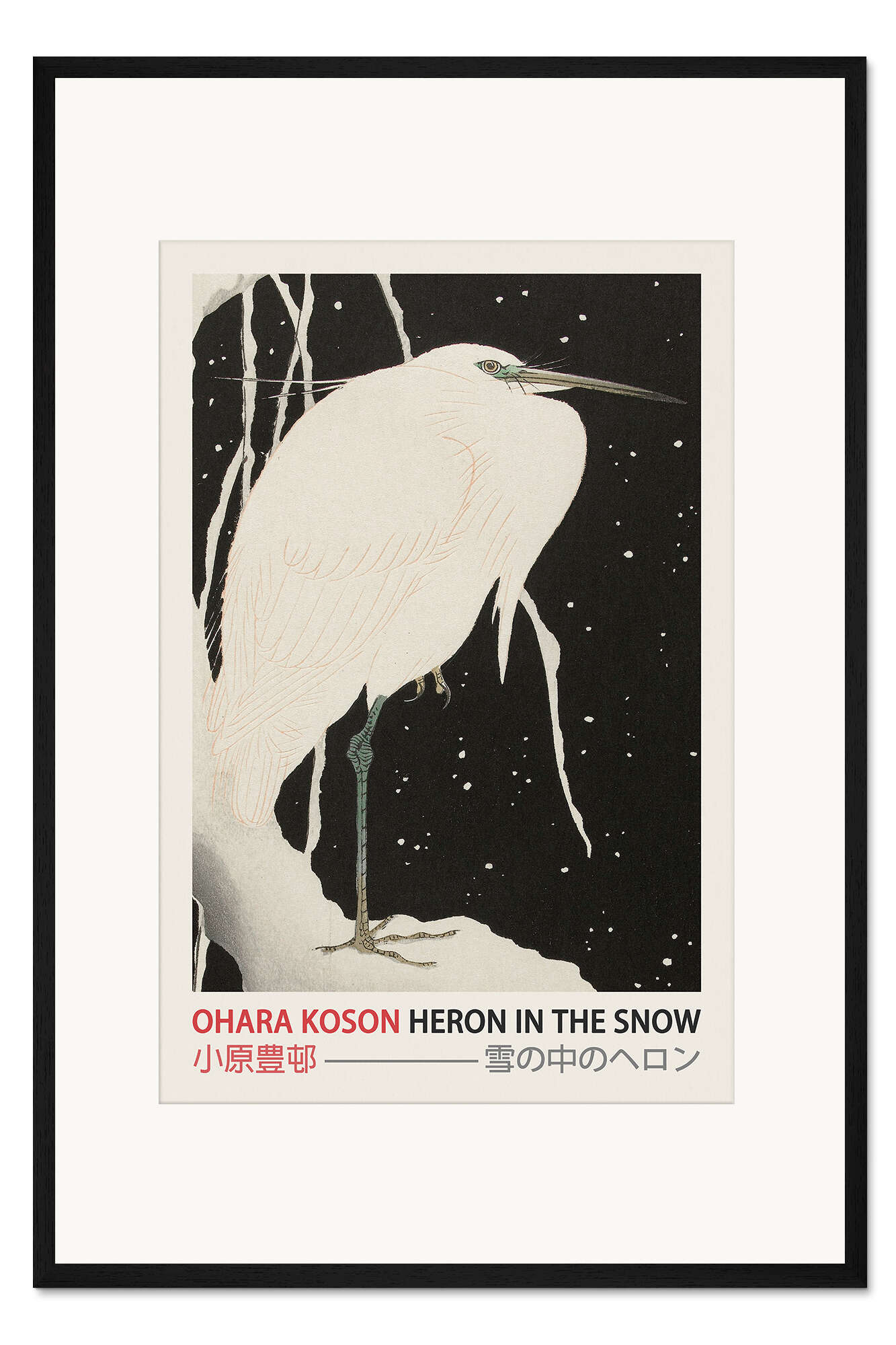 Posterlounge   Wandbilder   Schwarz   Ohara Koson   Gerahmter Kunstdruck Heron in the Snow