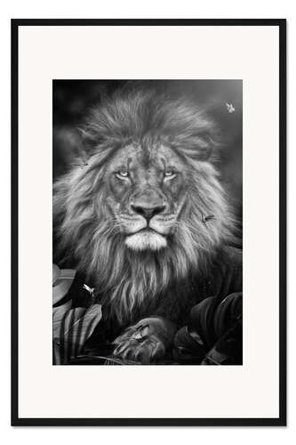 Posterlounge   Wandbilder   Fotografie   Fotocollage   Gen Z   Gerahmter Kunstdruck Ein Löwe im Dschungel, umgeben von Schmetterlingen