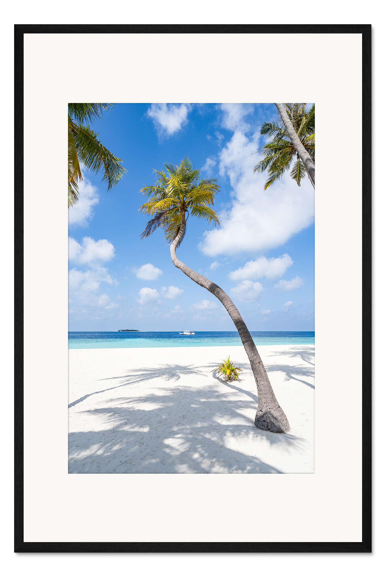Posterlounge   Wandbilder   Blau   Jan Christopher Becke   Gerahmter Kunstdruck Kokospalme am Strand auf den Malediven