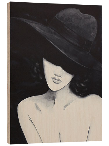 Holzbild Porträt einer Dame mit Hut