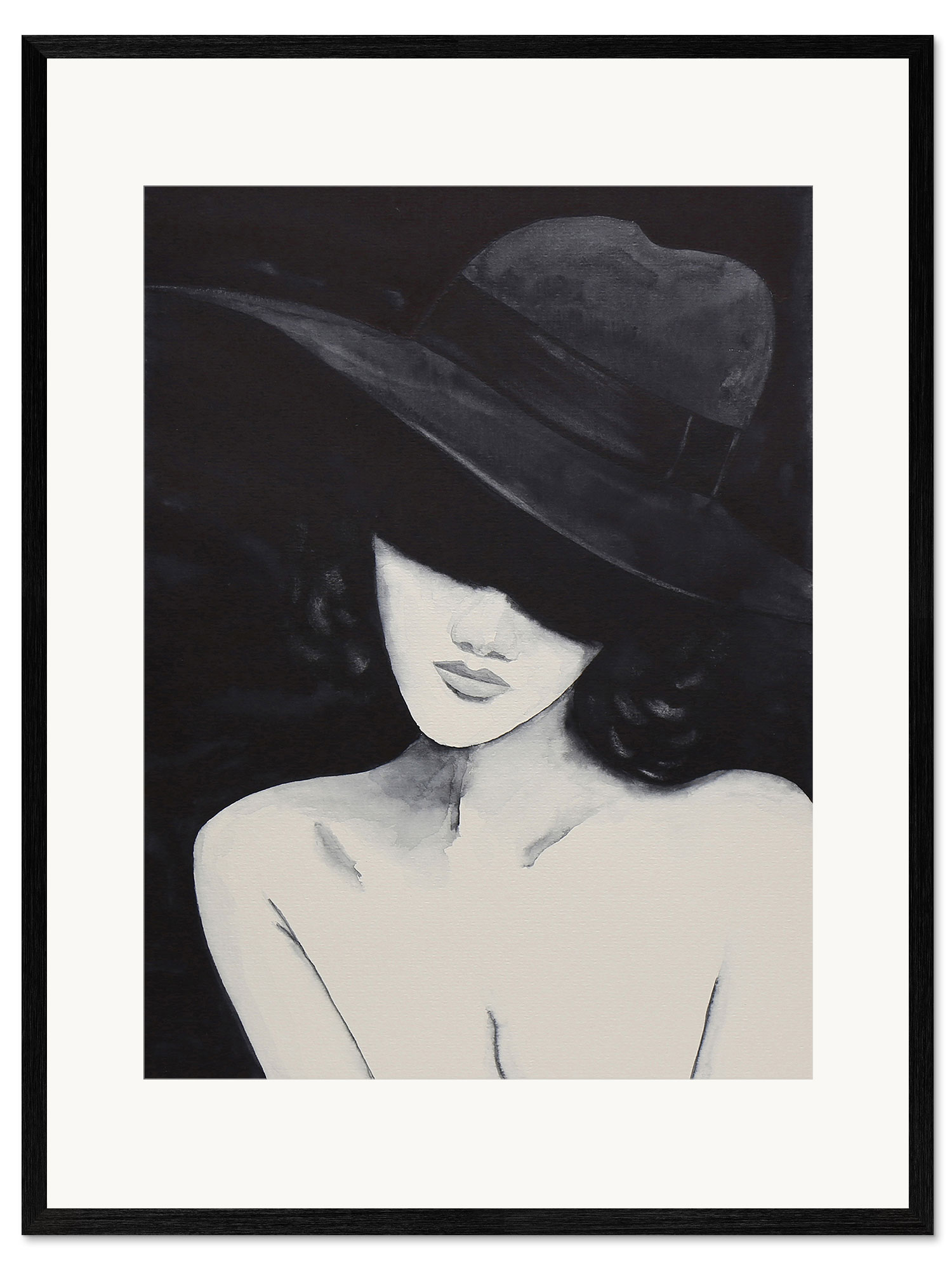 Gerahmter Kunstdruck Porträt einer Dame mit Hut