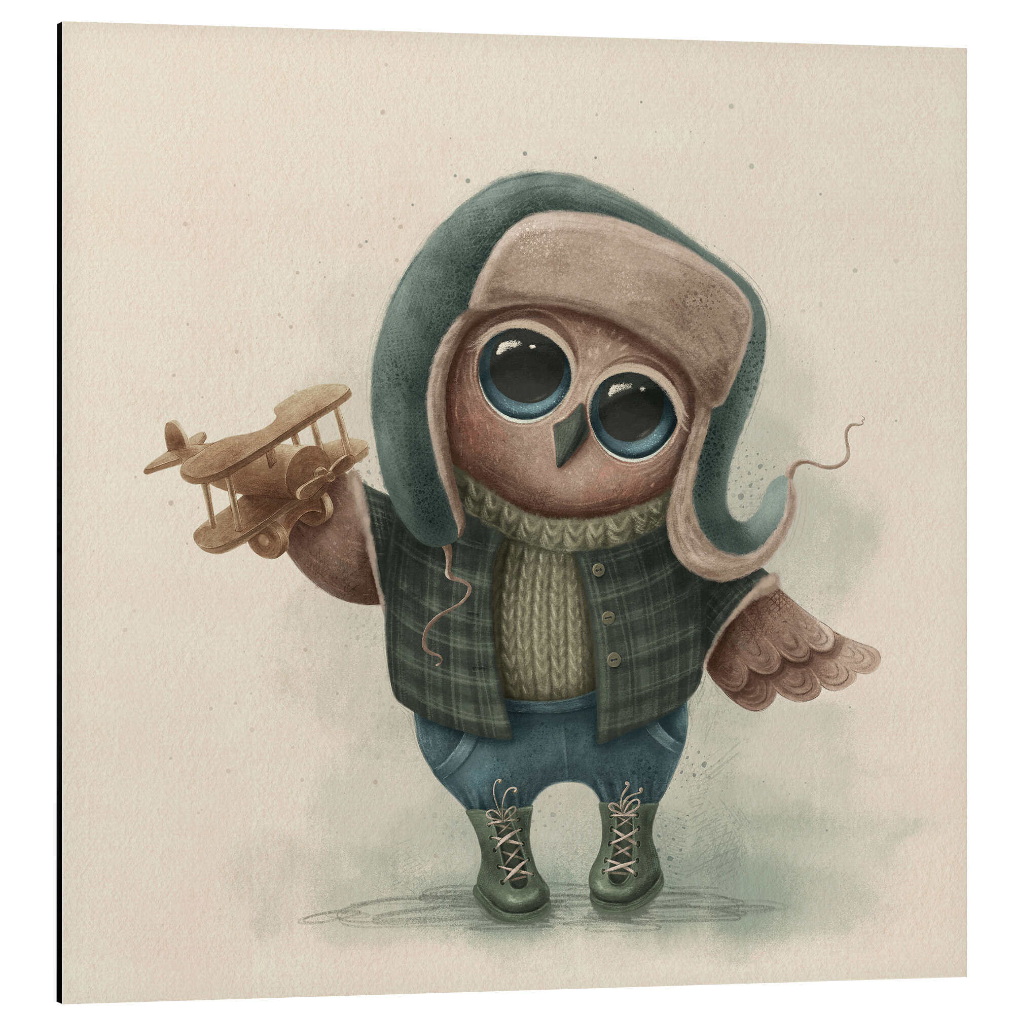 Posterlounge   Wandbilder   Beige   Elena Schweitzer   Magnettafel Süße Eule mit Flugzeugspielzeug