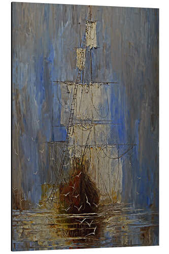Posterlounge   Wandbilder   Blau   Justyna Kopania   Magnettafel Mystisches Segelschiff im Nebel