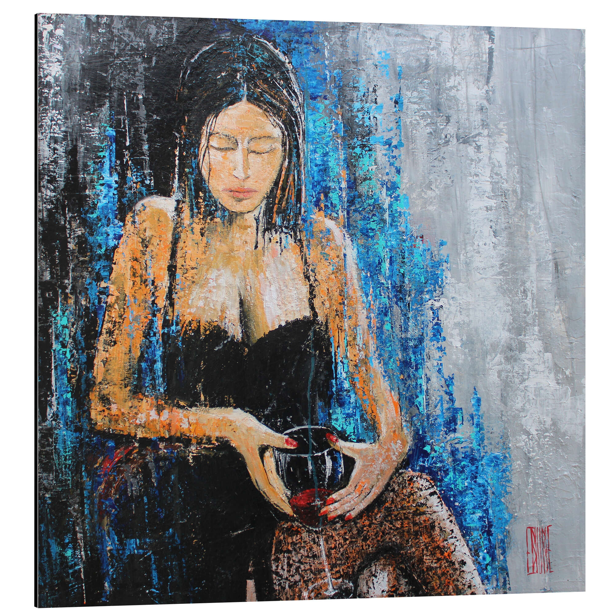Posterlounge   Wandbilder   Malerei   Abstrakte Kunst   Eric Bourse   Magnettafel Feminines Porträt mit Rotwein