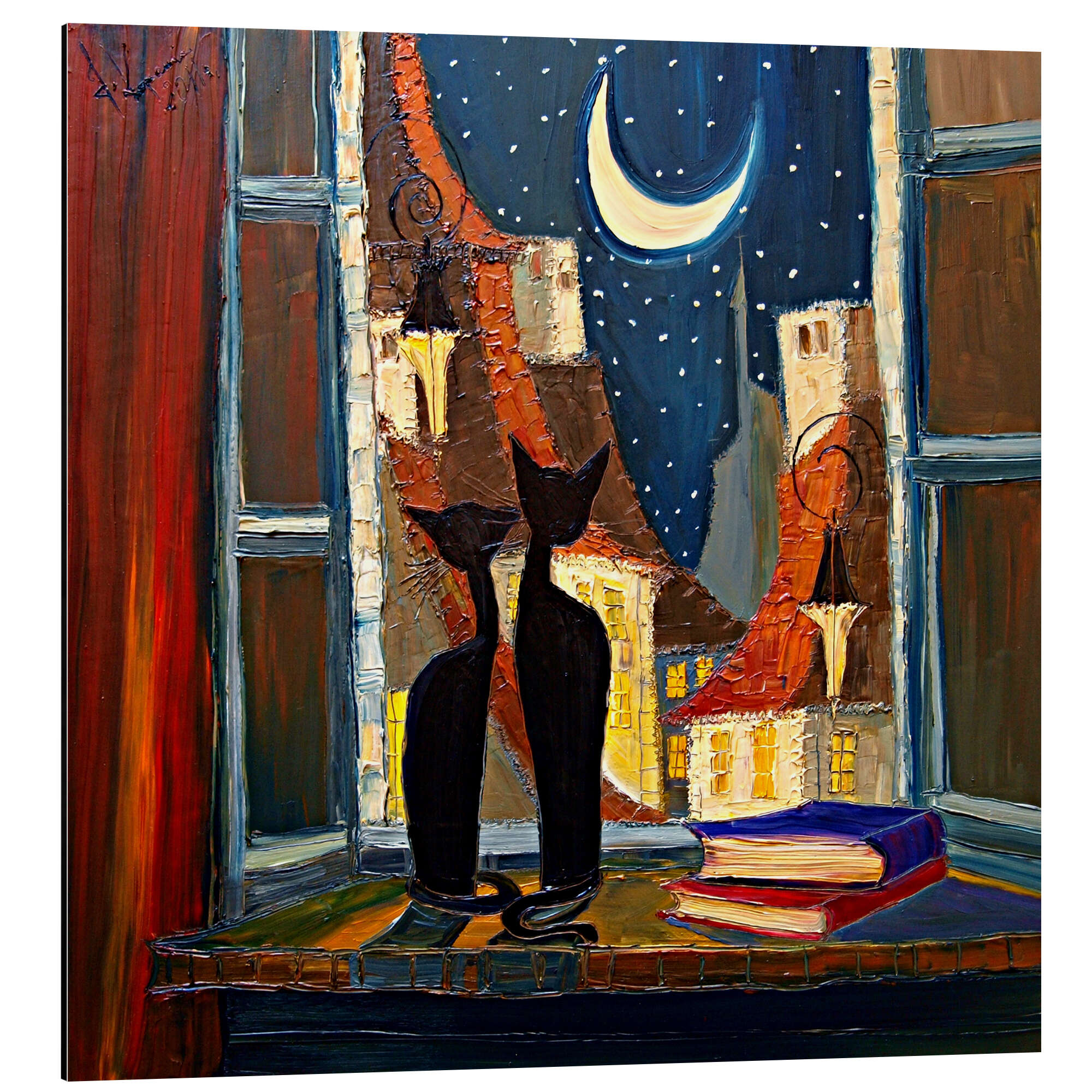 Posterlounge   Wandbilder   Architektur   Fenster   Justyna Kopania   Magnettafel Katzen über den Dächern von Paris