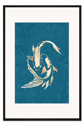 Posterlounge   Wandbilder   Illustration   Sarah Manovski   Gerahmter Kunstdruck Blau-Goldene Koi Karpfen I