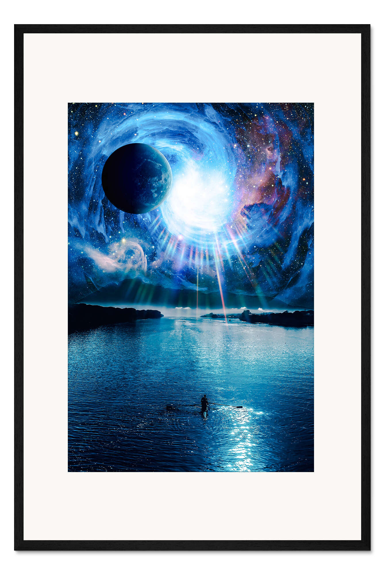 Posterlounge   Wandbilder   Fotografie   Fotocollage   Gen Z   Gerahmter Kunstdruck Ein Abenteurer segelt den Mysterien des Universums entgegen